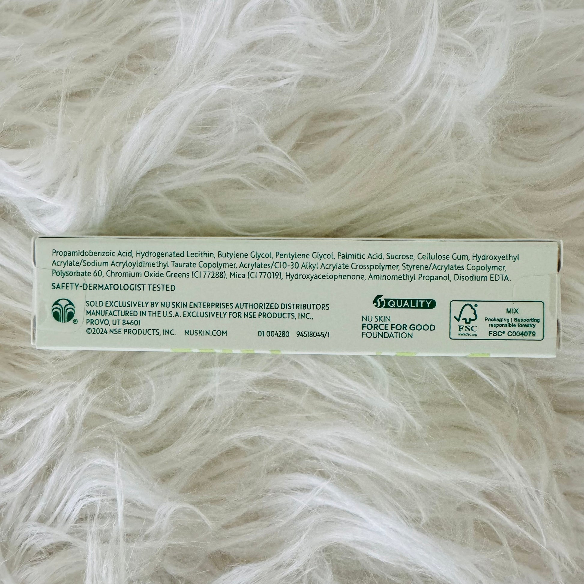 • Titanium Dioxide and Chromium Oxide Greens—Visibly neutralize redness on the skin for an even and refreshed appearance.