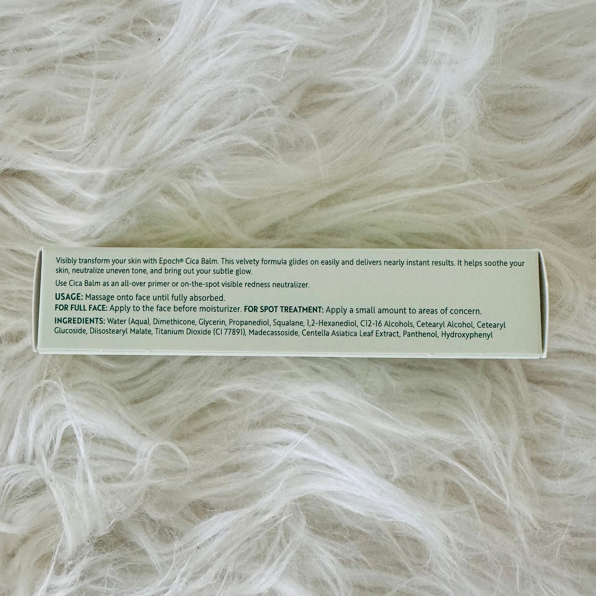 Epoch Cica Balm’s velvety formula glides on easily with nearly instant results, soothing your skin, neutralizing uneven tone, and bringing out your subtle glow. Use Cica Balm as on-the-spot visible redness neutralizer or an all-over primer. No matter how you use it, a visibly even-toned complexion has never been quite this effortless.