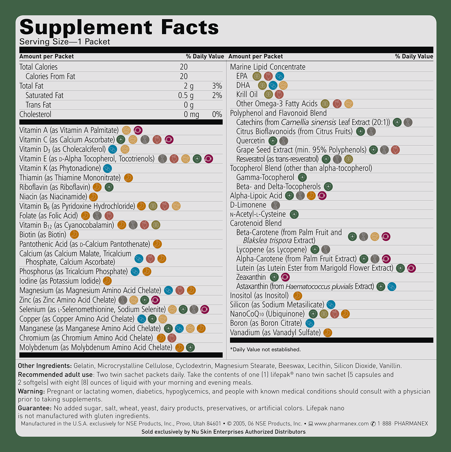 - Take two sachets daily. Take the contents of one LifePak Nano sachet (five capsules and two softgels) with eight ounces of liquid with your morning and evening meals.